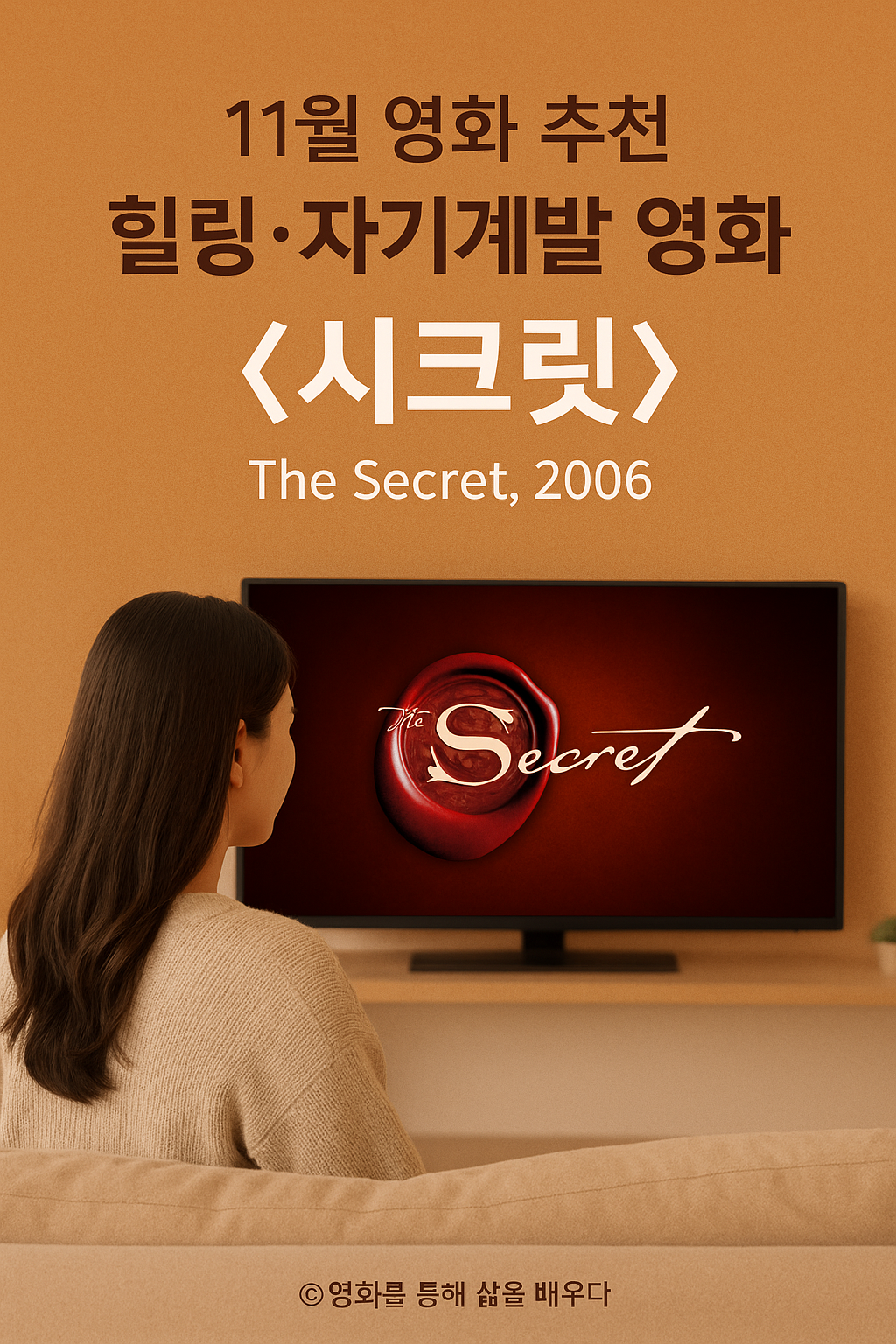 11월은 계절적으로도 심리적으로도 ‘전환점’의 달입니다. 가을의 끝자락, 한 해의 마무리. 우리는 자연스럽게 “올해 나는 얼마나 성장했을까?”를 돌아보게 되죠. 그런 시점에〈시크릿〉은 “당신의 인생을 바꾸는 힘은 언제나 당신 안에 있다”는 메시지로 마음을 따뜻하게 일으켜 세워줍니다. 또한, 이 영화는 명상이나 자기 성찰의 시작점으로도 좋아요. 잠시 스마트폰을 내려놓고, 조용히 내 마음의 생각이 어디를 향하고 있는지를 관찰해 보는 것만으로도 작은 변화가 시작됩니다.